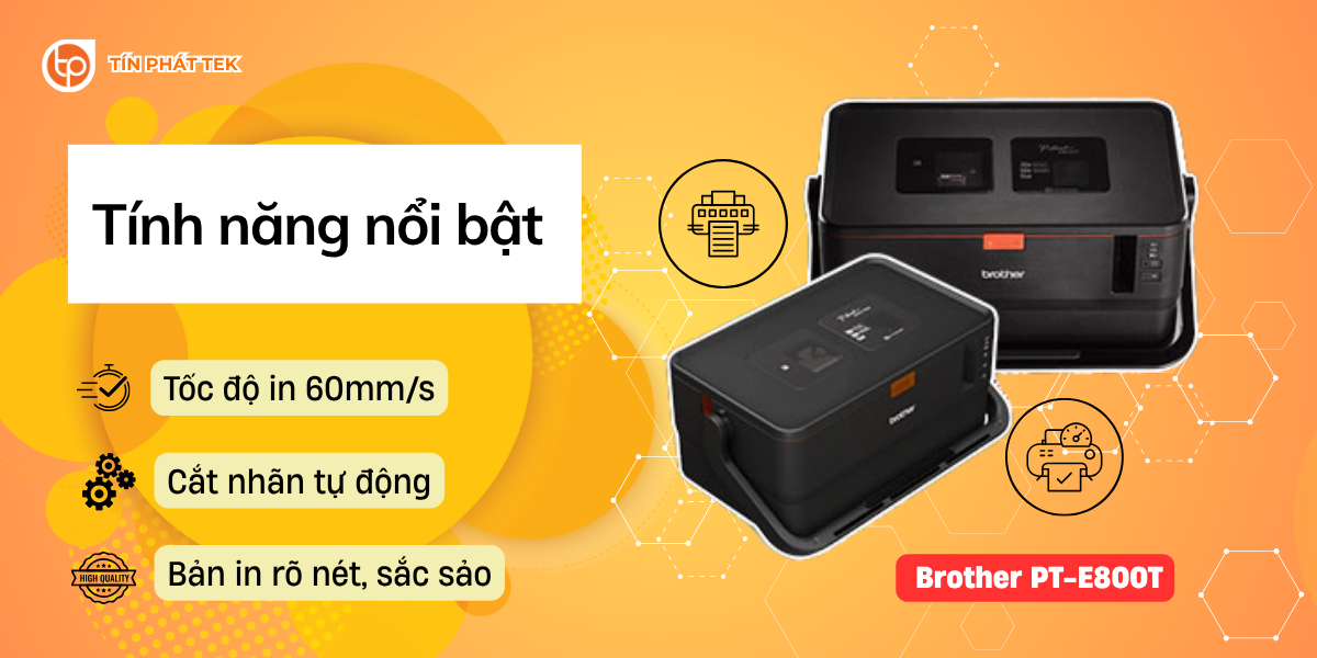 - Máy in Brother PT-E800T nổi bật với tốc độ và chất lượng in ổn định.