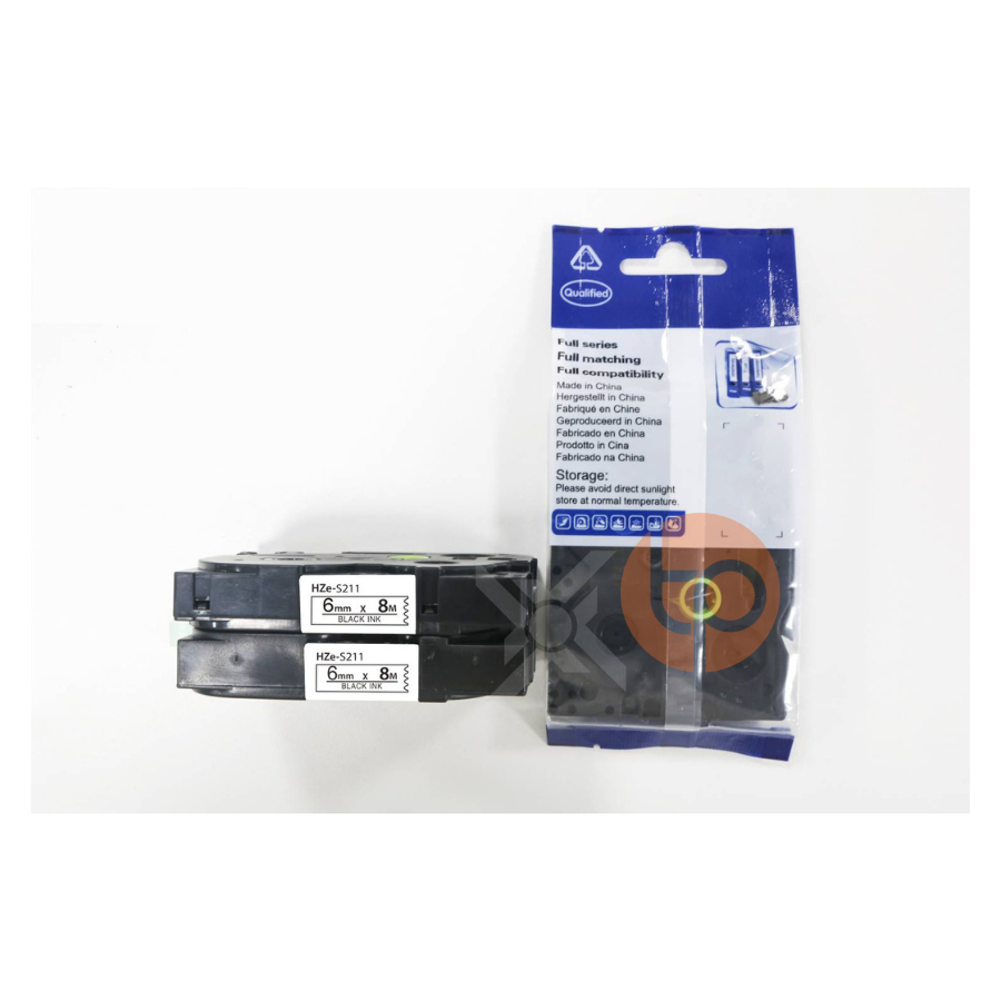 Nhãn in HZe-S211, Khổ rộng 6mm*dài 8m, chữ đen nền trắng( Black on White), siêu dính, bám dính cao.