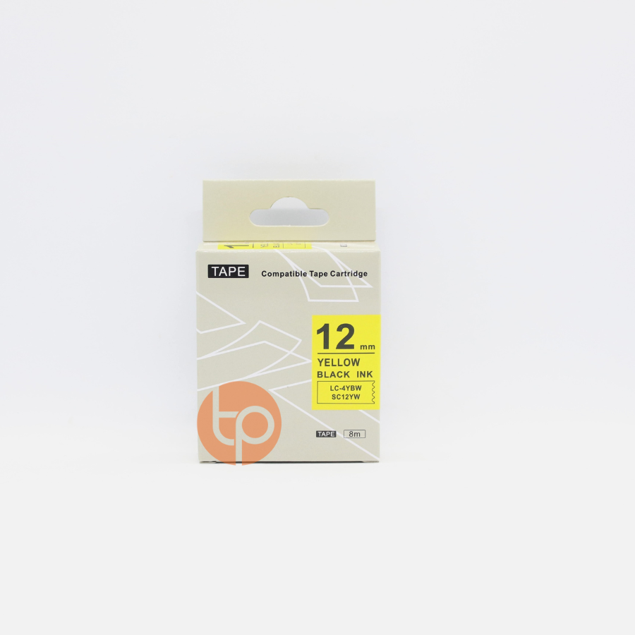 Nhãn in SC12YW/LC-4BYW, sử dụng cho máy in Tepra và Espon, chữ đen nền vàng, khổ rộng 12mm, dài 8m, thích hợp với máy Tepra PRO